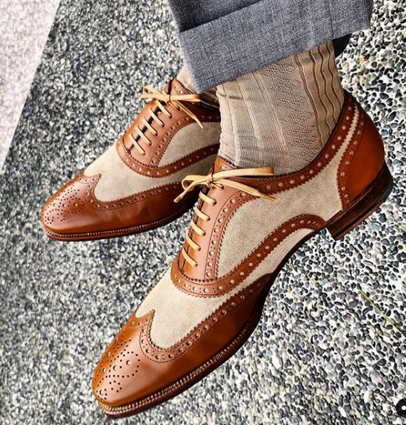 Handmade men tan and white shoes, spectator dress shoes for men, suede leather