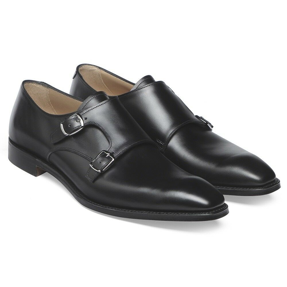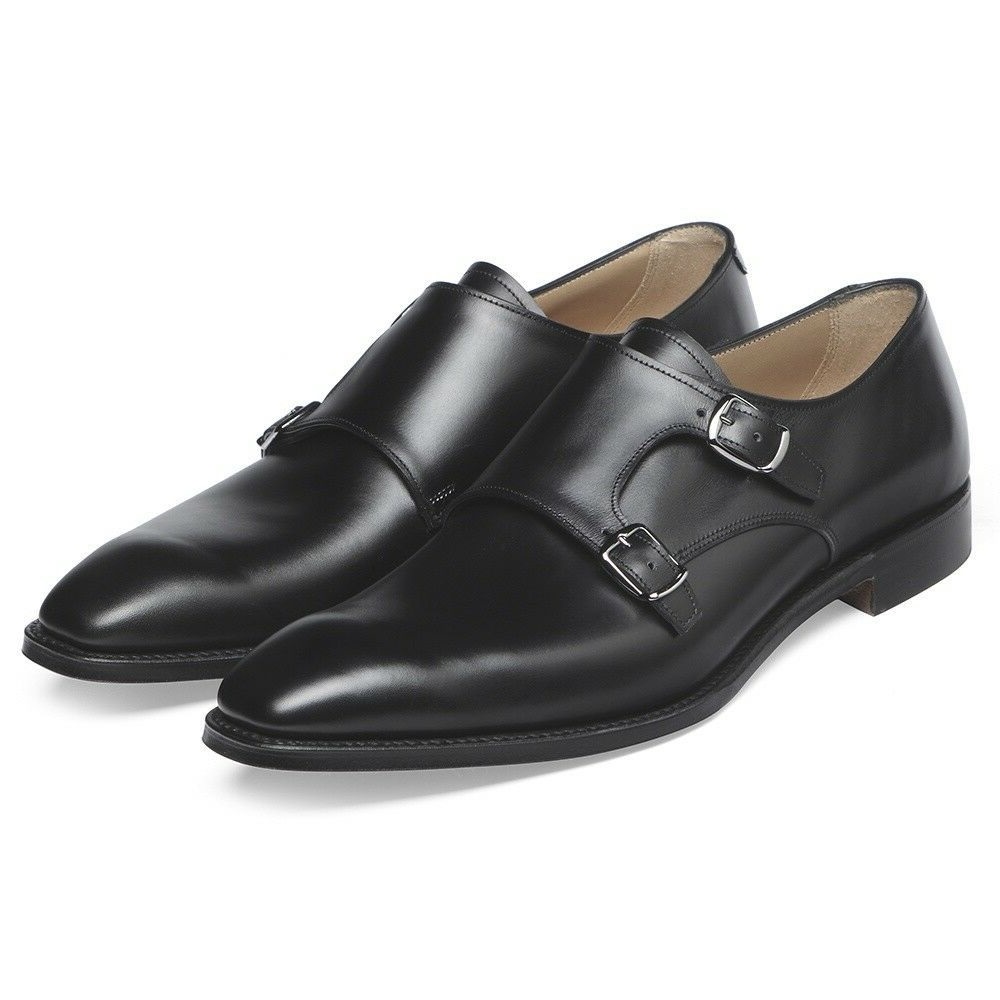 Handmade Men's Genuine Black Leather Double Monk Strap Formal Classic Shoes