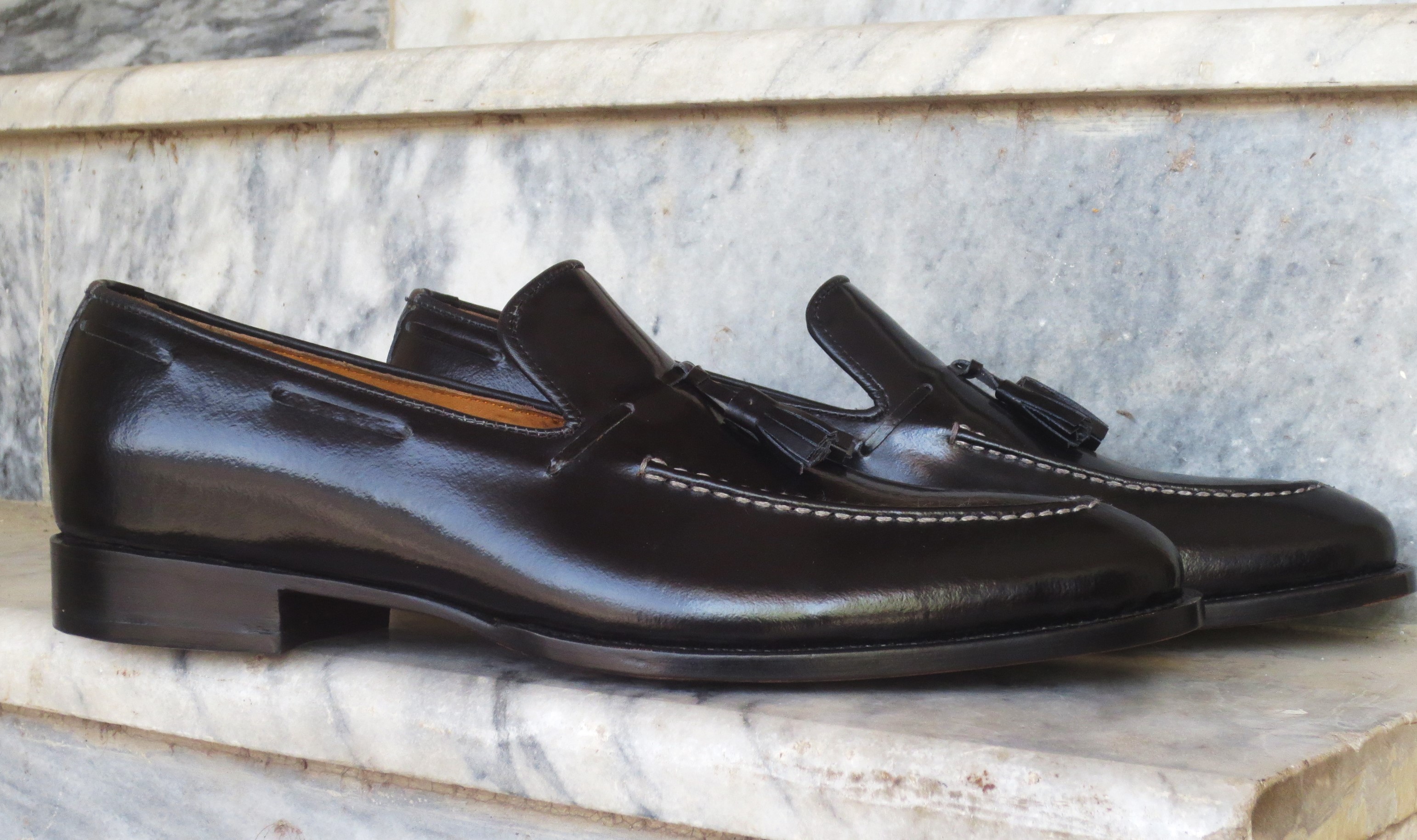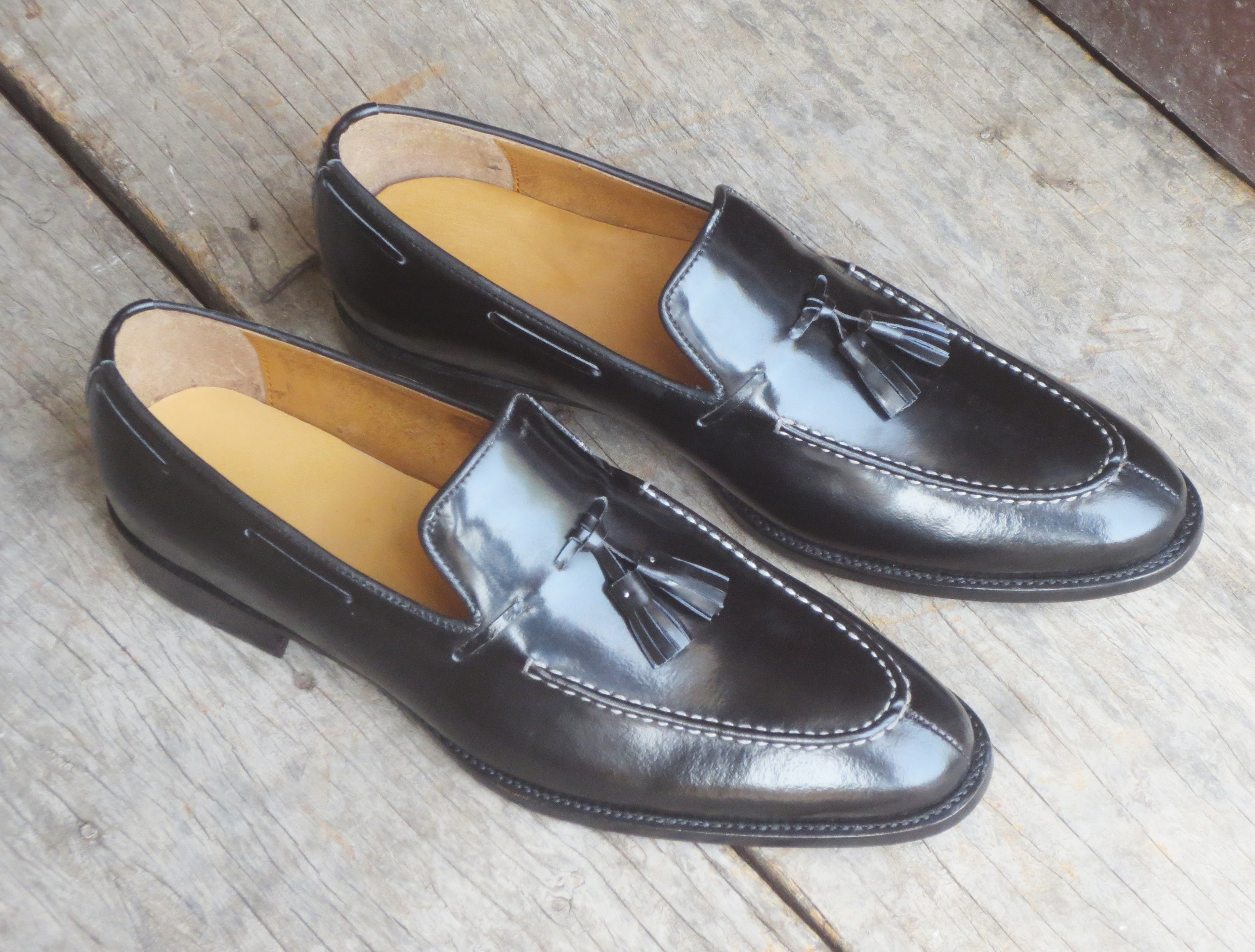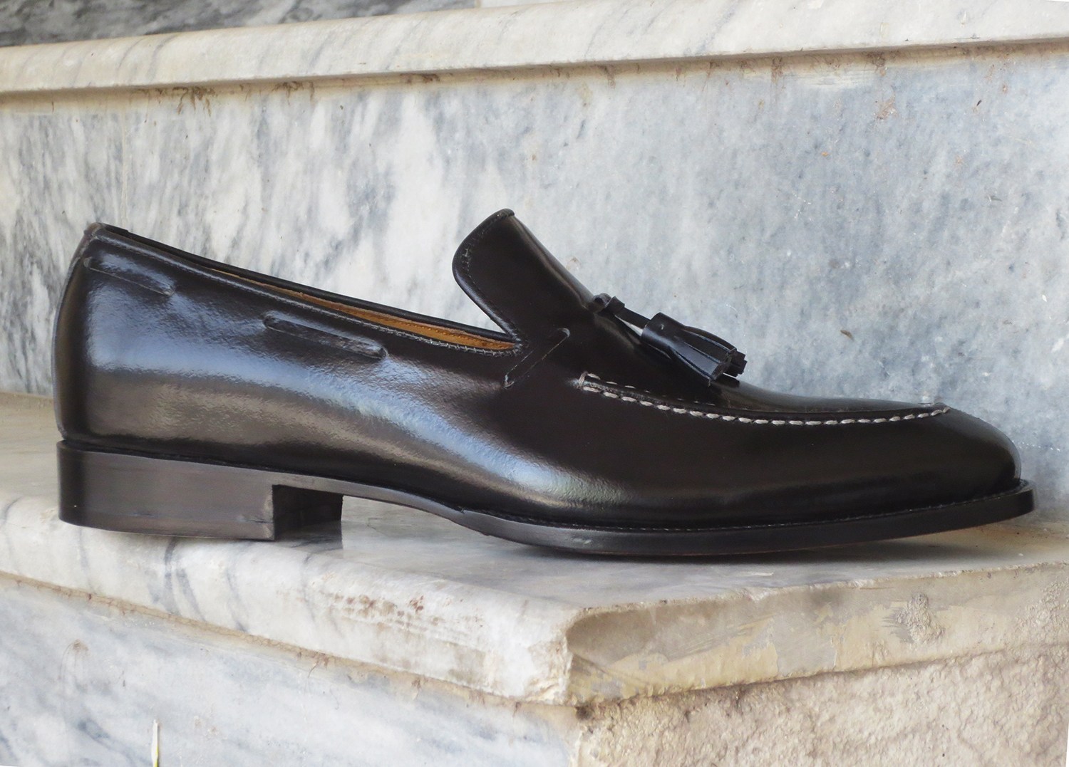 Handmade Black Loafers Leather Tussles Shoes. Mens Slip Ons.