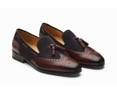 Handmade Brown Navy Blue Loafers Suede Leather Shoes