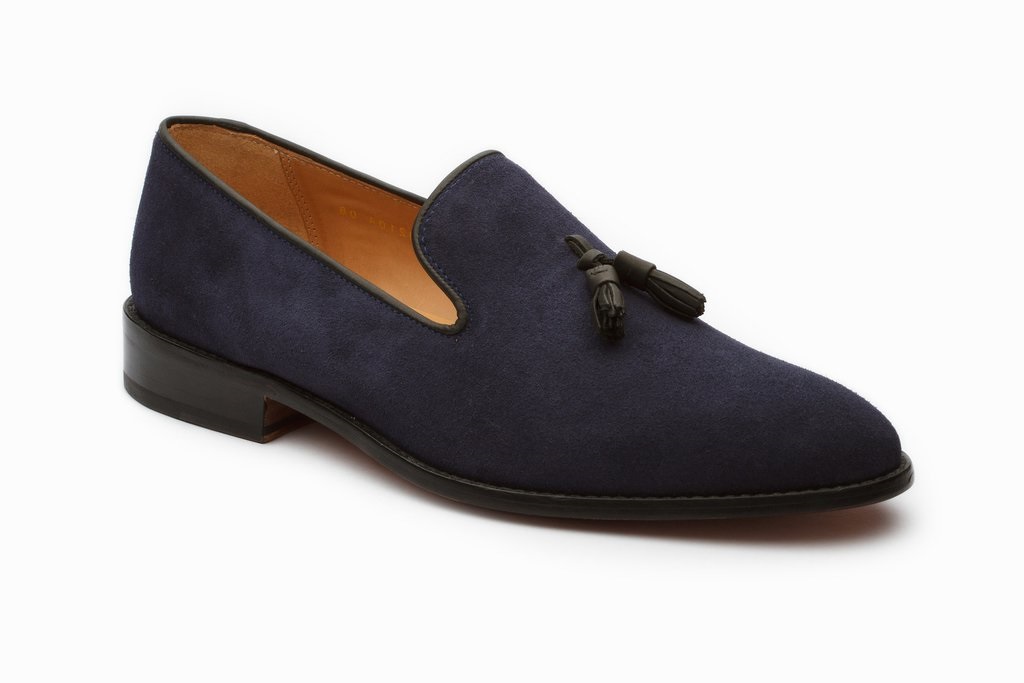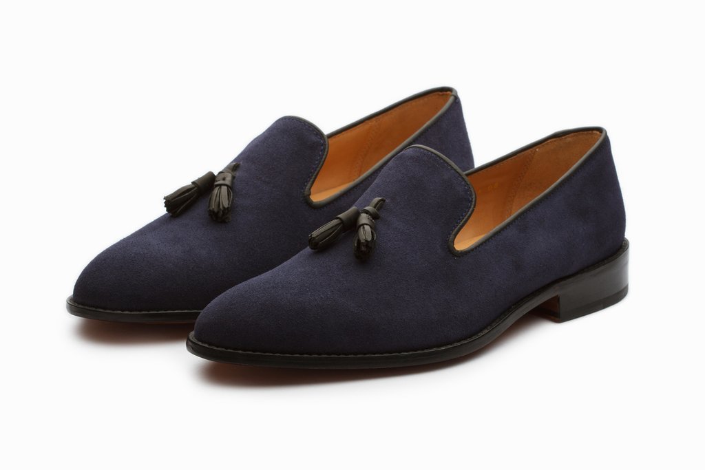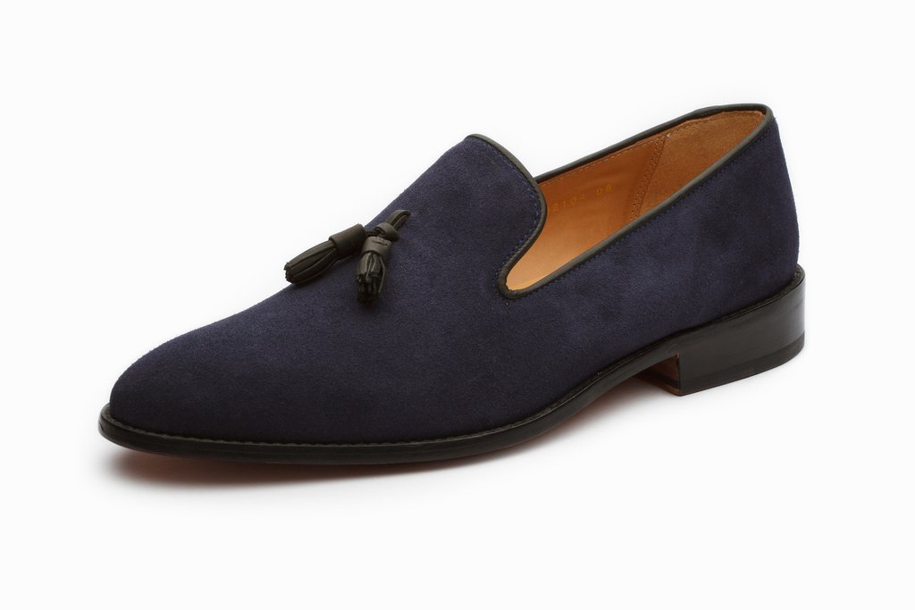 Handmade Navy Blue Suede Loafer Slipper Dress Mens Moccasin Tussles Shoes