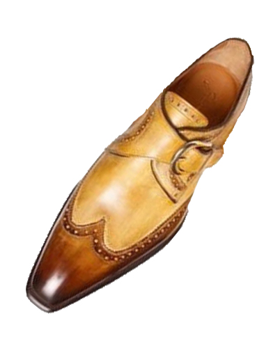 Handmade Mens Monk Shoes Two Tone Leather Wing Tip Monk Strap Casual Shoes