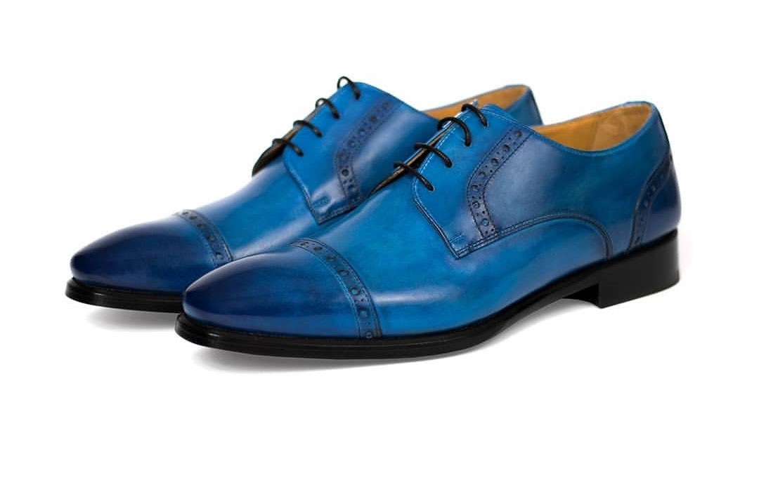 Handmade Leather Blue Color Shoes Mens Cap Toe Lace Up Shoes