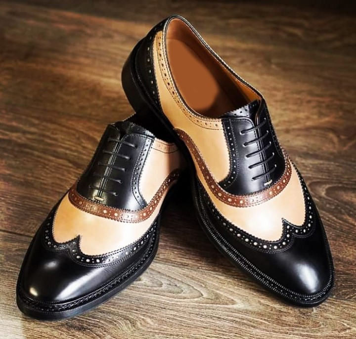 Handmade Mens Beige Brown Black Color Leather Wingtip Lace up Shoes