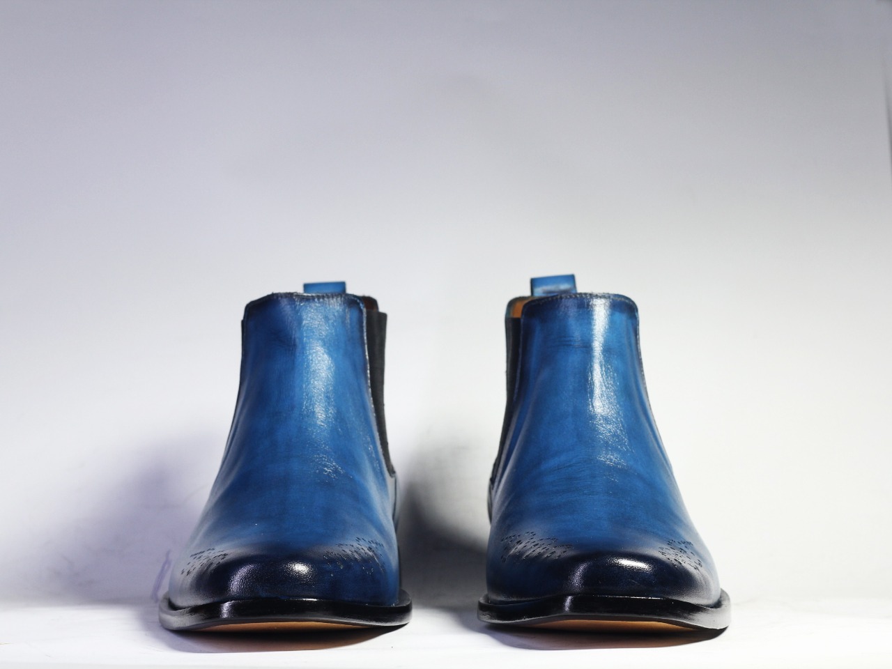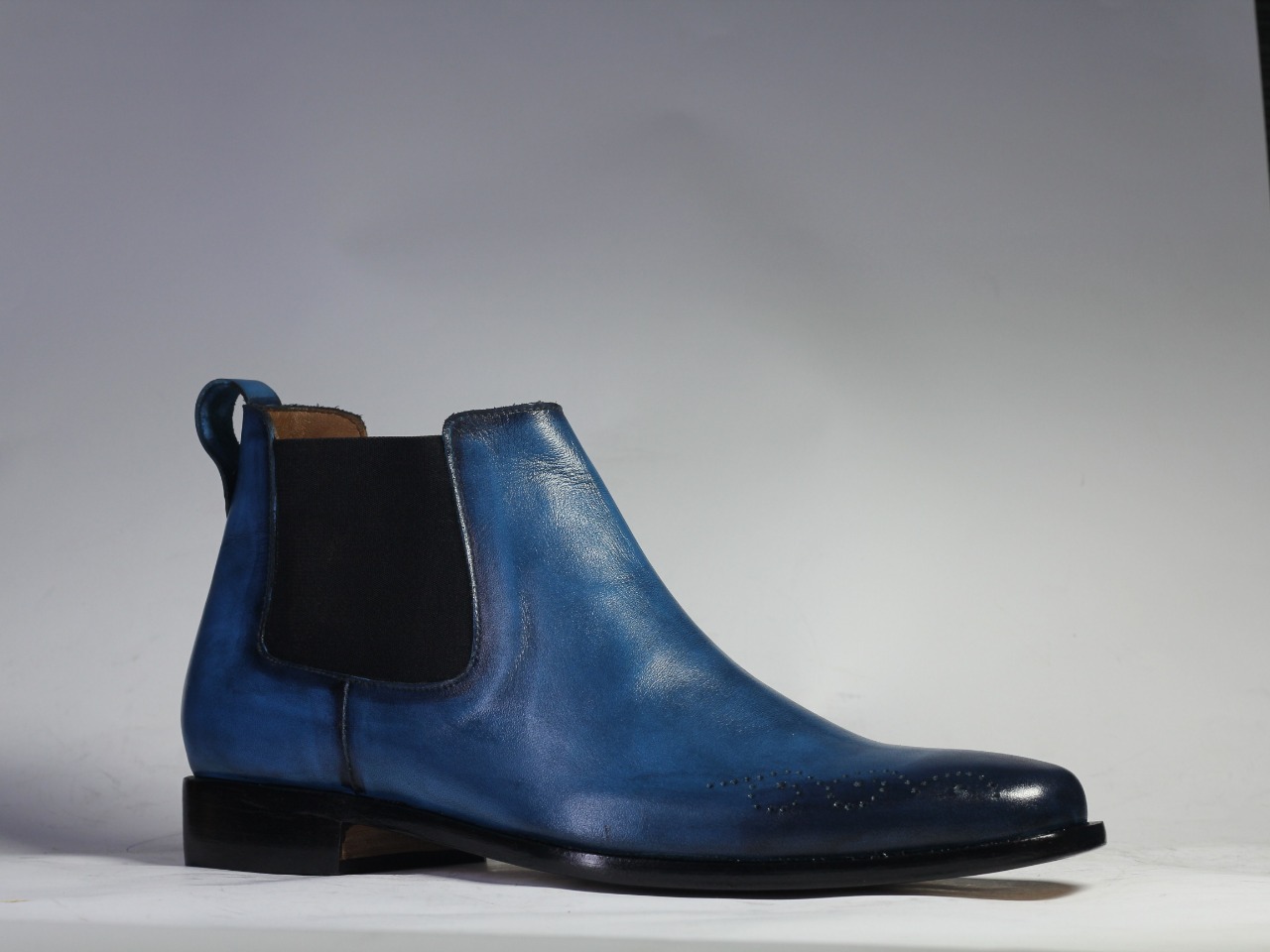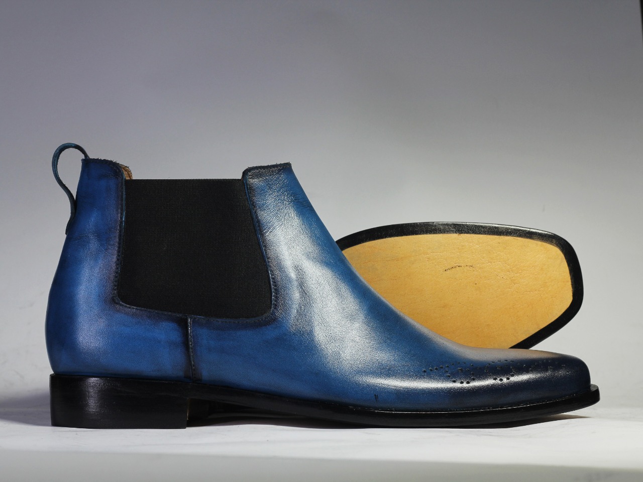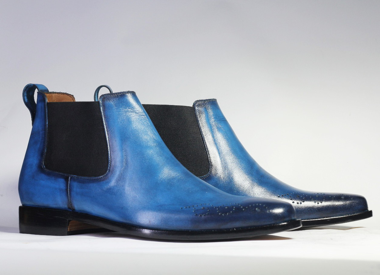 Handmade Half Ankle Chelsea Boot Mens Navy Blue Black Tone Leather Chelsea Boots for men