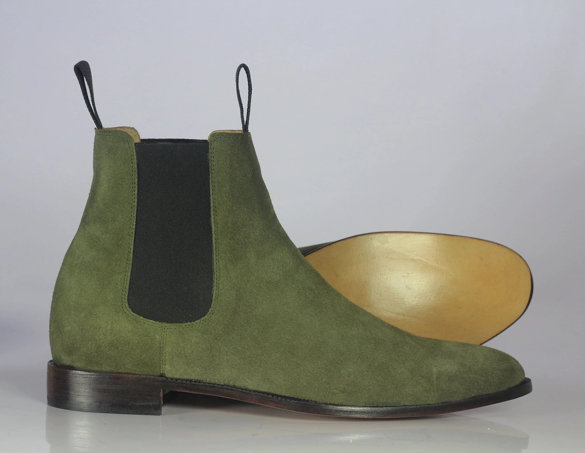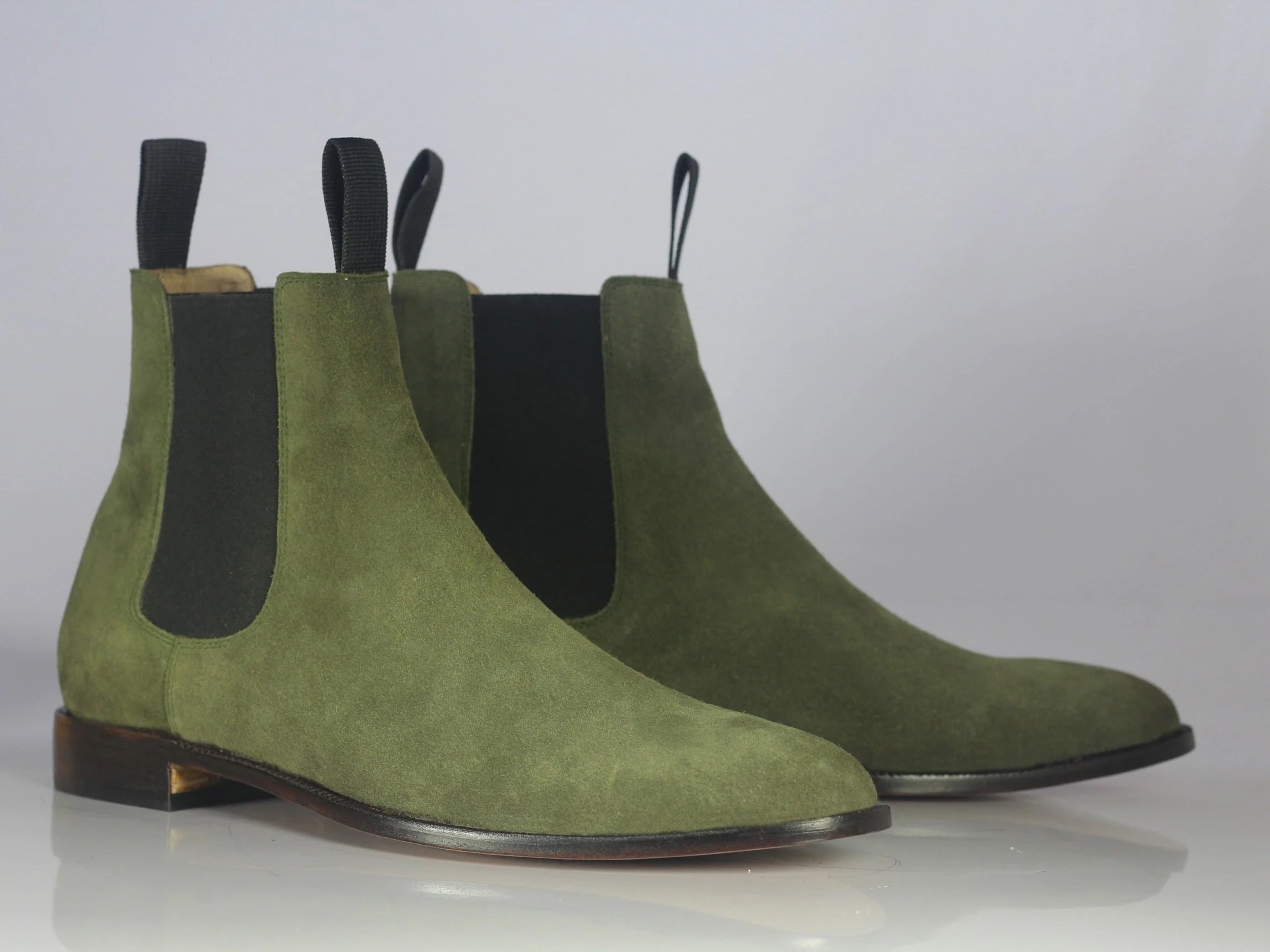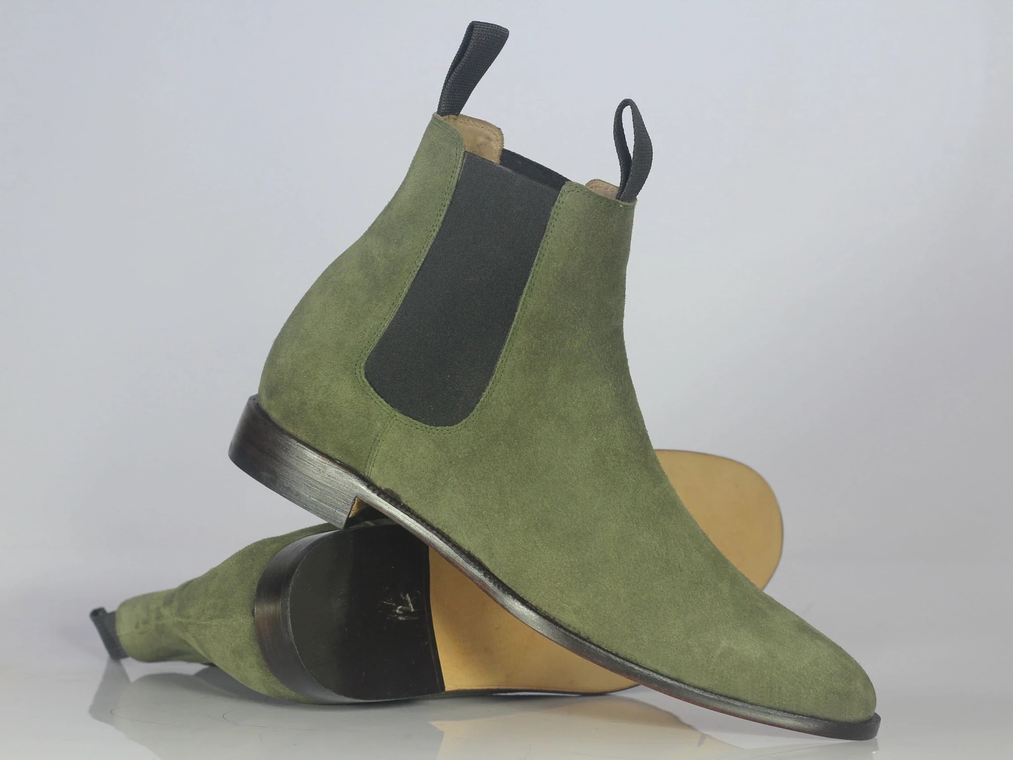 Olive Green Suede Chelsea Boot For Men. Chelsea Boots. Handmade Boots