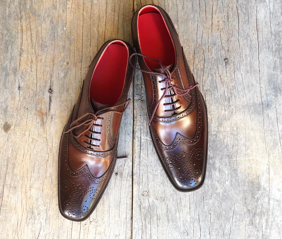 Mens Handmade Stylish Brown Wing Tip Brogue Leather Lace Up Shoes For Men